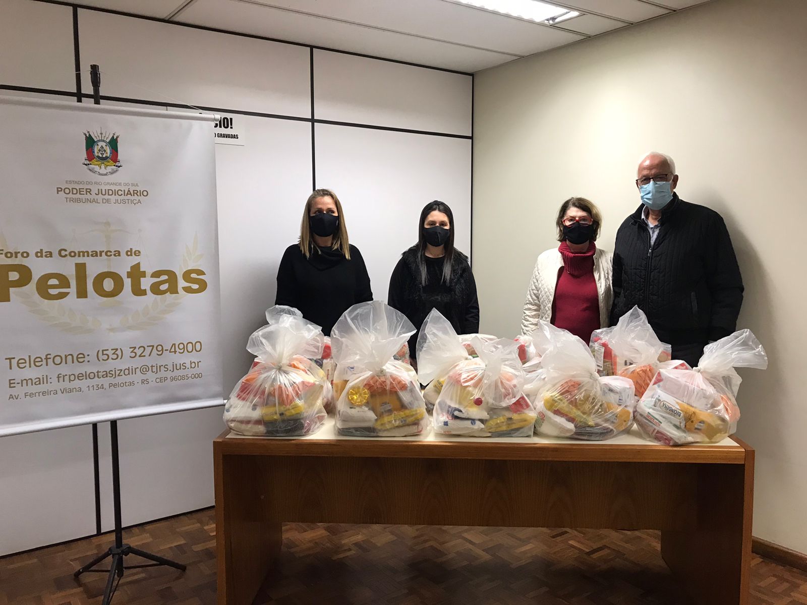 Os mantimentos são oriundos da campanha de arrecadação de alimentos, agasalhos e produtos de higiene do Foro de Pelotas, lançada no dia 23 de março desse ano.
